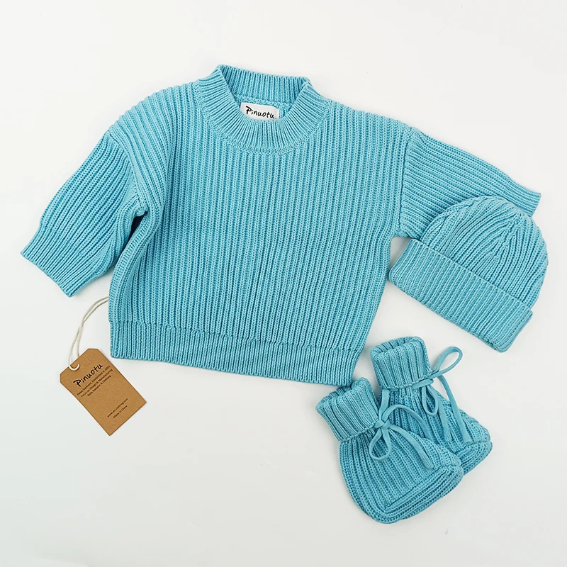 Pinuotu Baby Knitted Set Infant Ribbed Sweater Suit Unisex Booties Beanies Outfit Custom Knit Pullover Clothing Sets