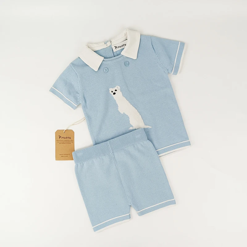 Pinuotu Baby Knitted Sweater Set Polo Tee Outfit Kids Shorts Suit 2 Pieces Baby Clothing Sets 0-3 months Summer Newborn Clothes