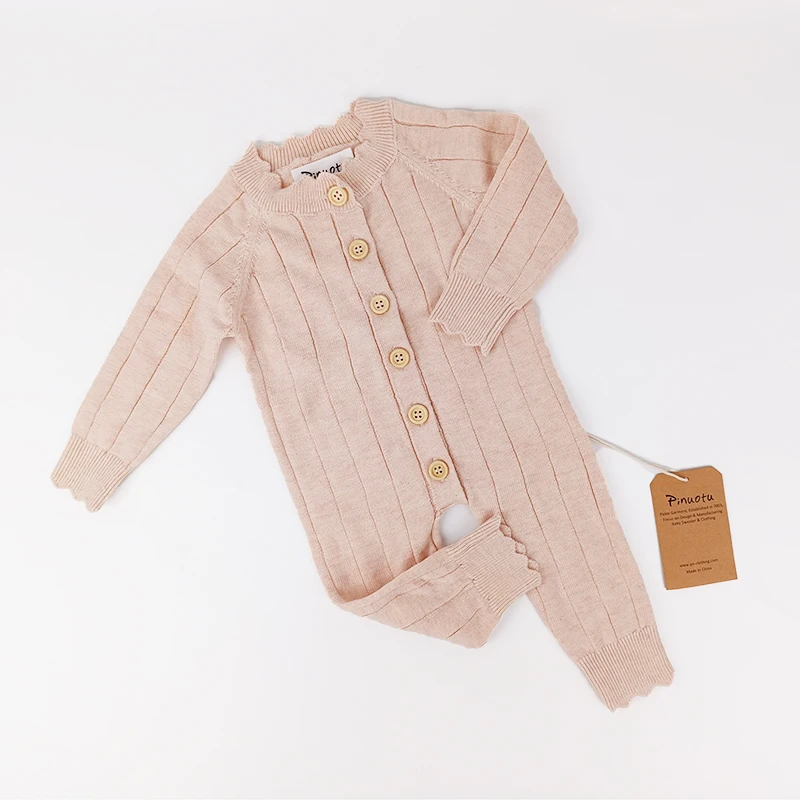 Pinuotu Long Sleeve Warm Baby Rompers Rib Gots Sweater Romper for Baby Knitted Clothes Winter Cotton Jumpsuit 3-6 Months