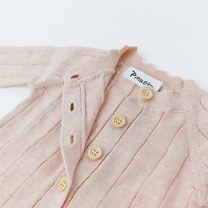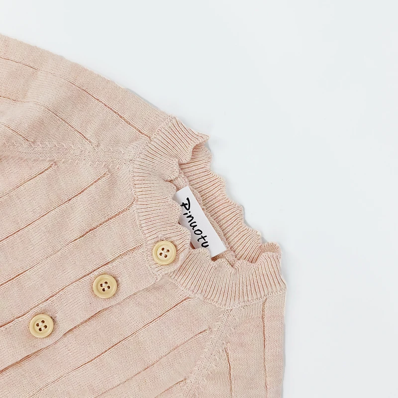 Pinuotu Baby Frill Romper Chunky Knitted New Born Jumpsuit Little Girl Sweater Lovely Pink Lemonade Knitwear Mini Coverall $8.31